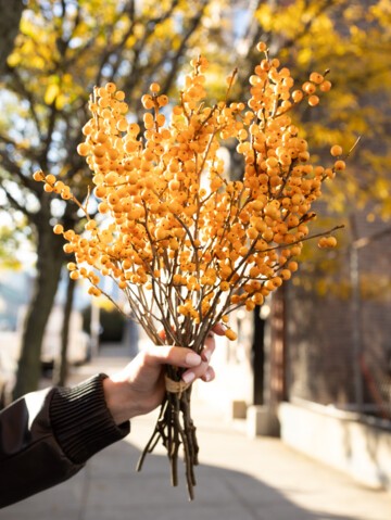 Standing tall at 3' with over 50 handpicked stems, Rita is the most colorful luxury you’ll ever see, with deep burgundies and radiant violets mixed with dark green eucalyptus and seasonal greens to blend in this perfection.