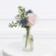 Notes of pink and white are a sweet accent to any tablescape. Please note exact varieties used may vary. Arranged in a smoke medicine bud vase. Design stands approximately 6-7in tall.