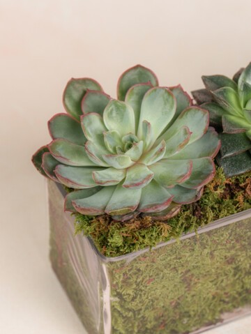 For a stunning visualization, we plant them in wooden or glass containers that add to the minimalistic look. These plants are known for their unique shapes and textures, as well as their ability to thrive with minimal water.
