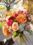 Burgundy and peach roses unfold among eucalyptus and waxflower, creating a bouquet that feels generous and grounded. Hand-tied with intention, it’s made to bring a bit of warmth wherever it lands: your kitchen, your table, your week.