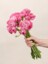 Size: Stems are clipped to 15” and arranged in a tight, raffia-tied bouquet