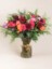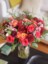 Flowers: Pink Floyd and Free Spirit Roses, Burgundy Mums, Lisianthus, Silver Brunia, Seasonal Greens