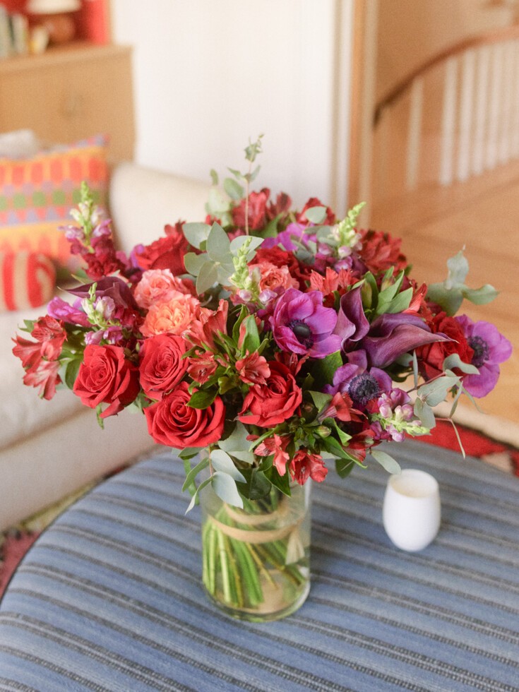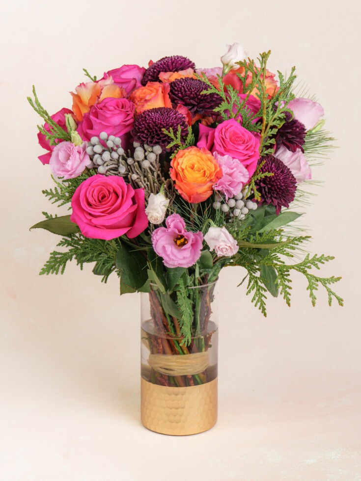 This arrangement will be hand-delivered in a glass vase carefully wrapped in our Ode gift paper. We print your note on a gift card and tuck it securely to the side of the arrangement.