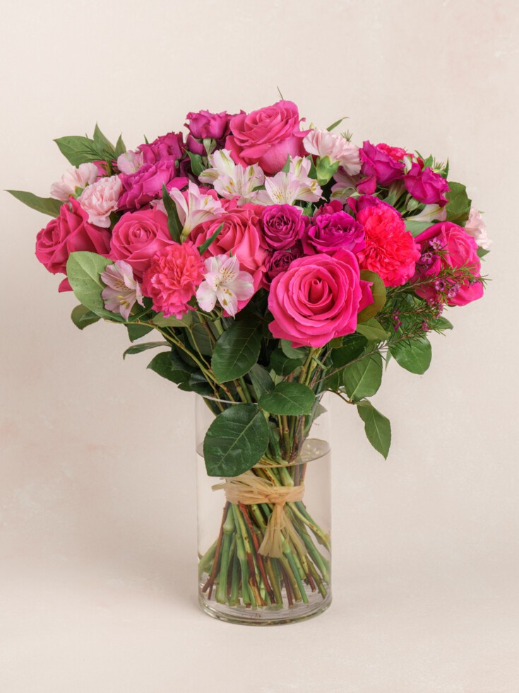 This arrangement will be hand-delivered in a glass vase carefully wrapped in our Ode gift paper. We print your note on a gift card and tuck it securely to the side of the arrangement.