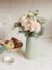 Flowers: Quicksand Roses, Carnation, Spray Rose, Dusty Miller, and Eucalyptus