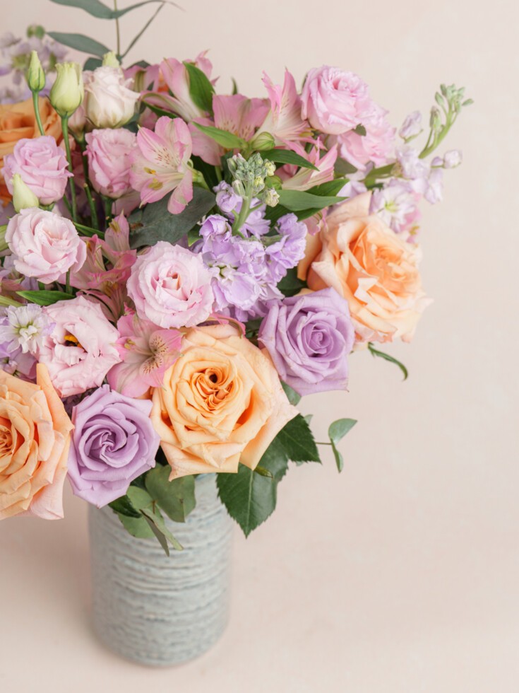 This bouquet is delivered in our signature 16″ gift box in NYC, Chicago, Los Angeles, Austin, Miami, and Washington, DC. For nationwide orders, we use an overnight shipping box designed to keep flowers fresh and secure. Each bouquet is wrapped in a water-filled sleeve and topped with soft tissue for protection. Your personal message is printed on our illustrated card and tucked neatly inside, along with any vase or extra gift.