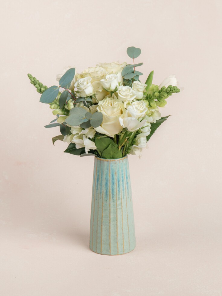 Each bouquet is carefully packed with a built-in water source to stay fresh during transit. We take extra care to ensure that our white floral arrangement shipping process maintains the bouquet’s shape, quality, and softness every step of the way. This is U.S. wide flower shipping you can feel confident about.
